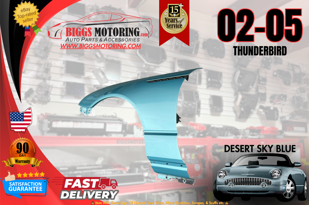 02-05 Ford Thunderbird Driver Side Left Front Fender Assembly Desert Sky Blue