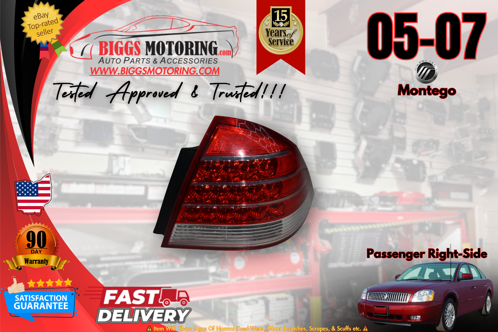 2005-2007 Mercury Montego Passenger Right Side Rear Tail Light 5T53-13B504-A