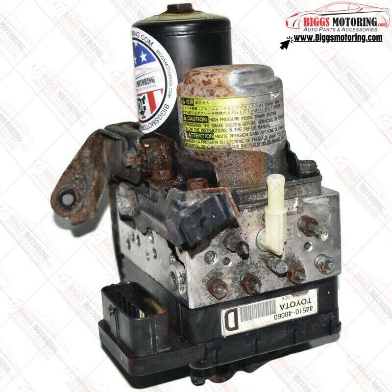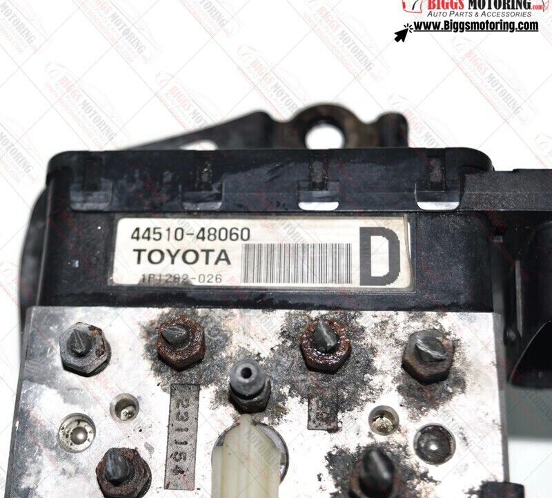 This ABS pump and motor assembly is a genuine factory stock controller for Toyota and Lexus hybrid vehicles. It is designed for the hydraulic brake pump system module and actuator, booster master cylinder module, and locking lock. The module unit is an OE/OEM part number 44510-48060 and is meant for the front placement on the vehicle.