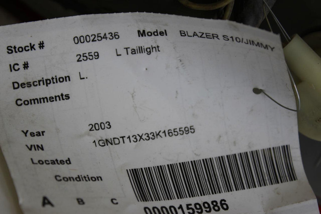 1995-2004 CHEVY BLAZER SIDE REAR DRIVER TAILLAMP TAILLIGHT 16518499