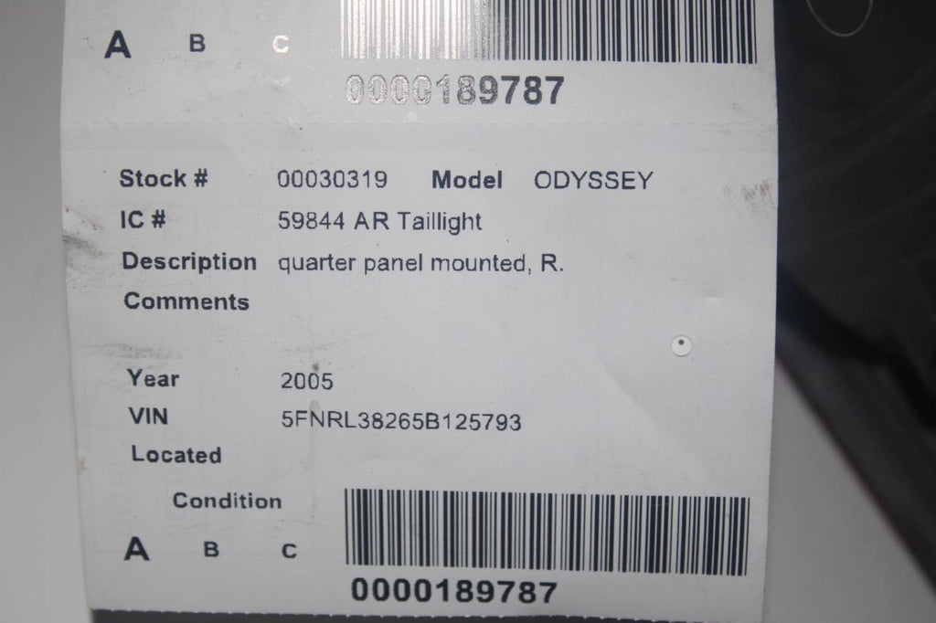 2005-2007 HONDA ODYSSEY PASSENGER SIDE TAIL LIGHT 30319