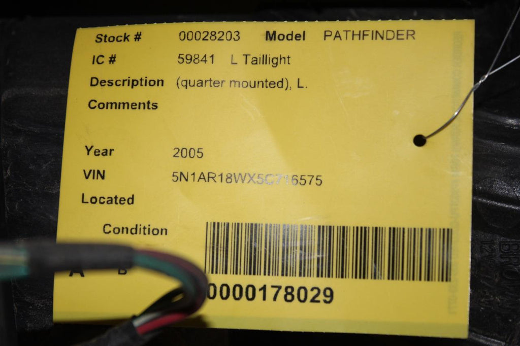 2005-2012 NISSAN PATHFINDER DRIVER SIDE REAR TAIL LIGHT 28203