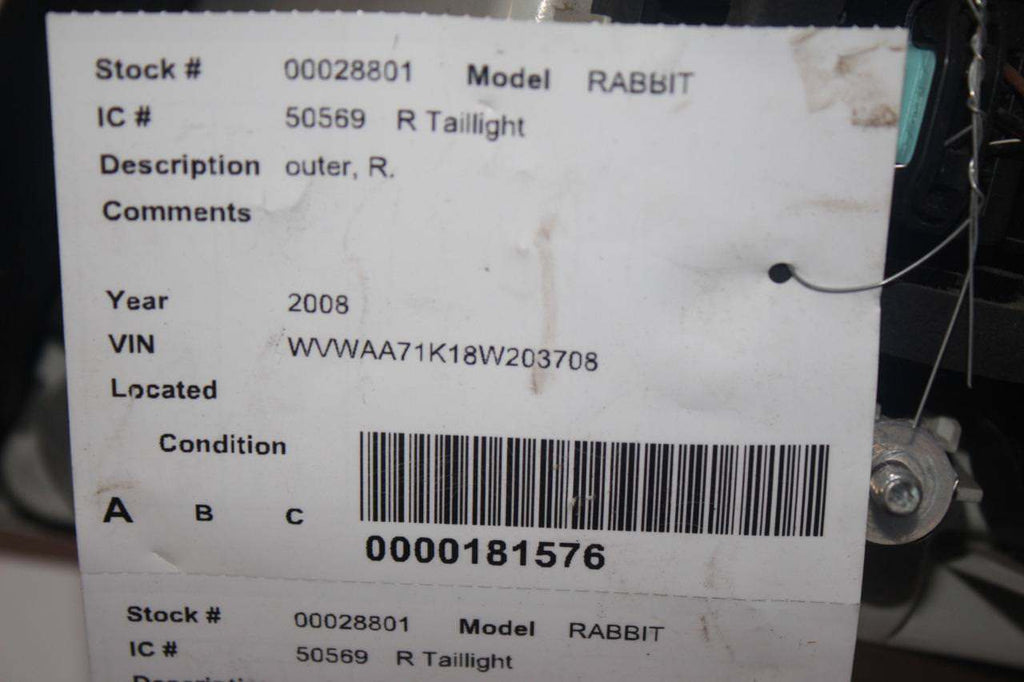 2006-2009 VOLKSWAGEN RABBIT PASSENGER SIDE REAR TAIL LIGHT 28801