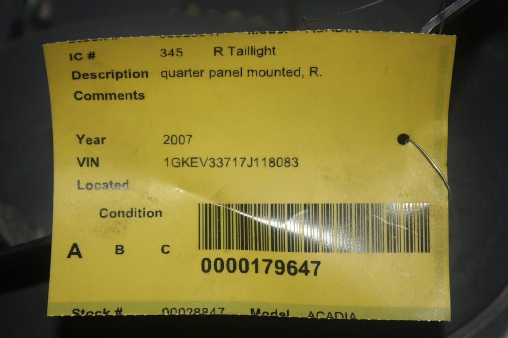 2007-2012 GMC ACADIA PASSENGER SIDE REAR TAIL LIGHT 28847