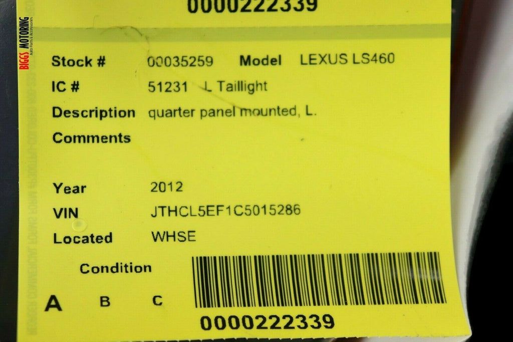 2010-2012 Lexus LS460 Passenger Right Side Rear Tail Light 35259