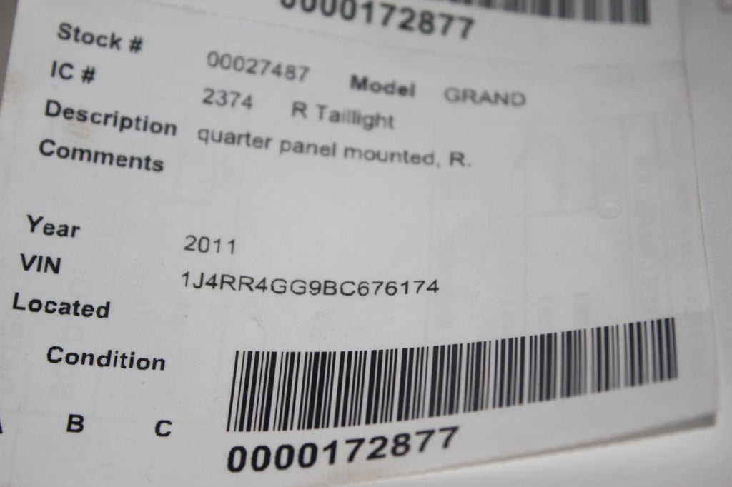 2011-2013 JEEP GRAND CHEROKEE PASSENGER RIGHT SIDE TAIL LIGHT
