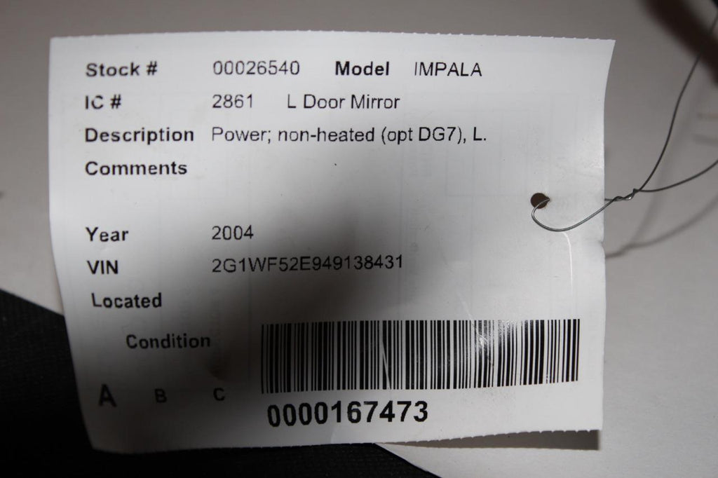 2000-2005 CHEVY IMPALA DRIVER LEFT SIDE POWER DOOR MIRROR WHITE