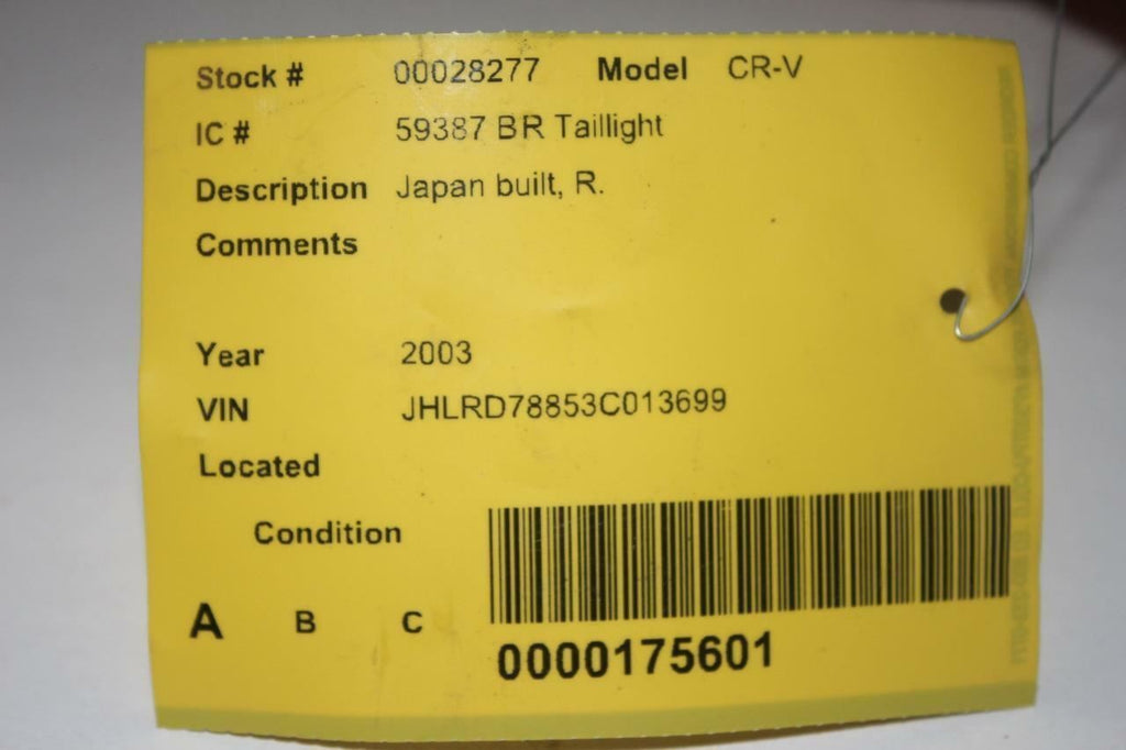 2002-2004 HONDA CR-V PASSENGER SIDE RIGHT TAIL LIGHT 28277