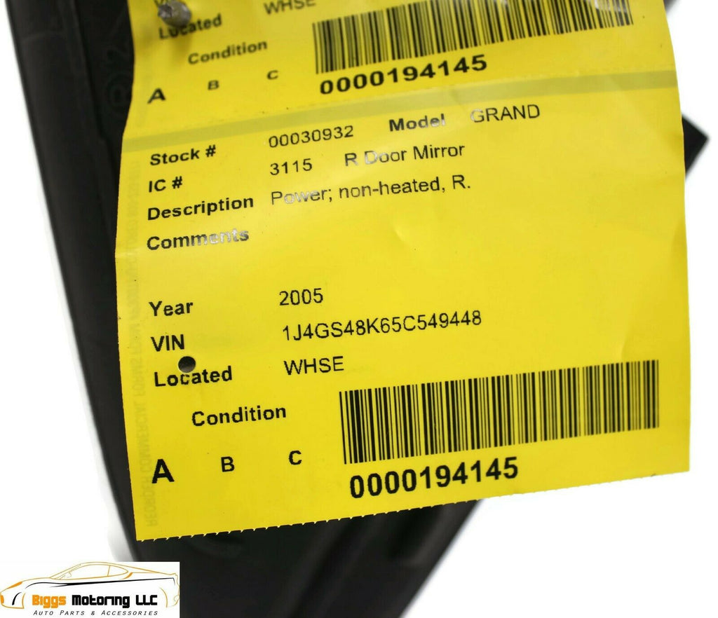 2005-2010 Jeep Grand Cherokee Passenger Side Power Door Mirror Black 30932