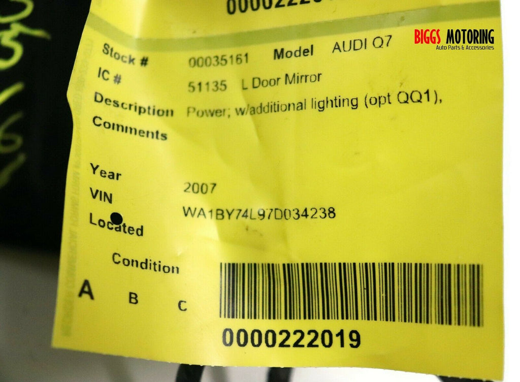 2007-2009 Audi Q7 Driver Left Side Power Door Mirror Gary 35161