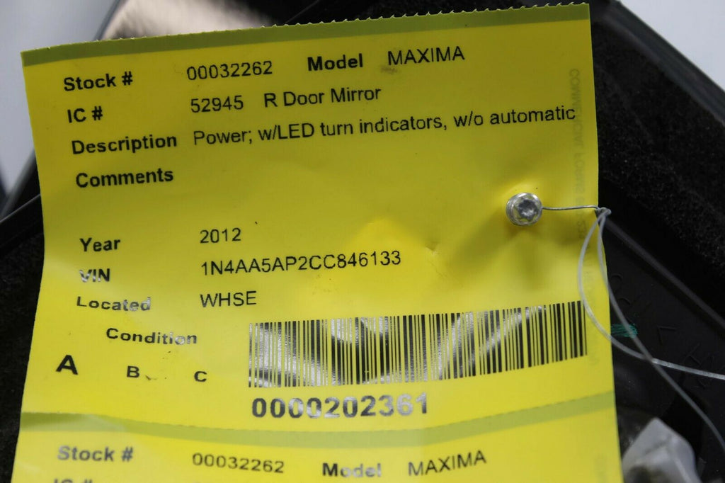 2009-2014 Nissan Maxima Passenger Right Side Power Door Mirror Black 32262