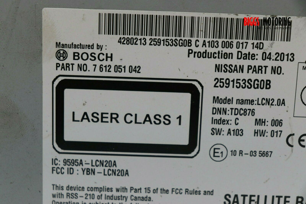 2012-2014 Nissan Sentra Versa Navi Radio Display Screen Cd Player 25915 3SG0B