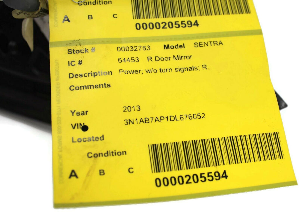 2013-2015 Nissan Sentra Passenger Right Side Power Door Mirror Black 32783